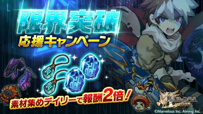 素材集めデイリークエストで入手できる素材が2倍になる「限界突破応援キャンペーン」が開催中。「オリハルコン」や「ナノファージ」が集めやすくなっており、武器の限界突破用素材が多く入手可能だ。